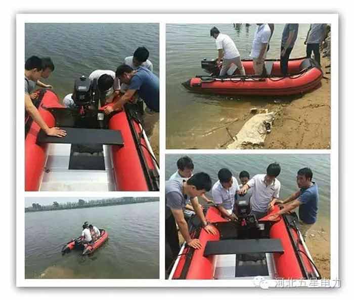 河北省一家水庫管理局從河北五星電力設備有限公司緊急采購15艘防汛搶險橡皮舟,河北五星“應急響應技術服務隊”三名隊員在客戶收到貨后,長途奔波數百公里,為客戶現場調試設備,免費提供操作技術培訓,受到客戶贊譽!